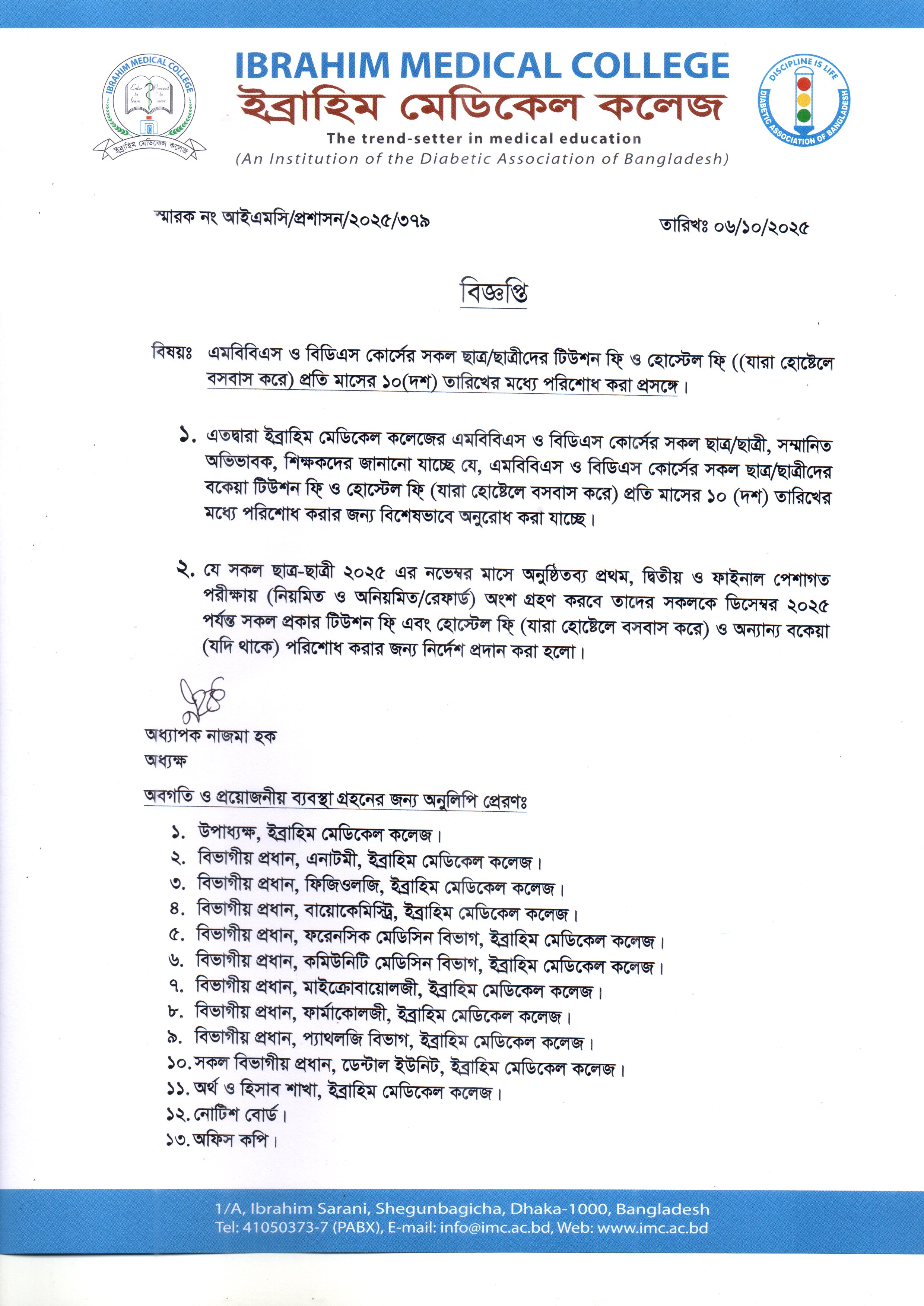 Download: Notice related to tution fee and hostel fee of MBBD and BDS course.