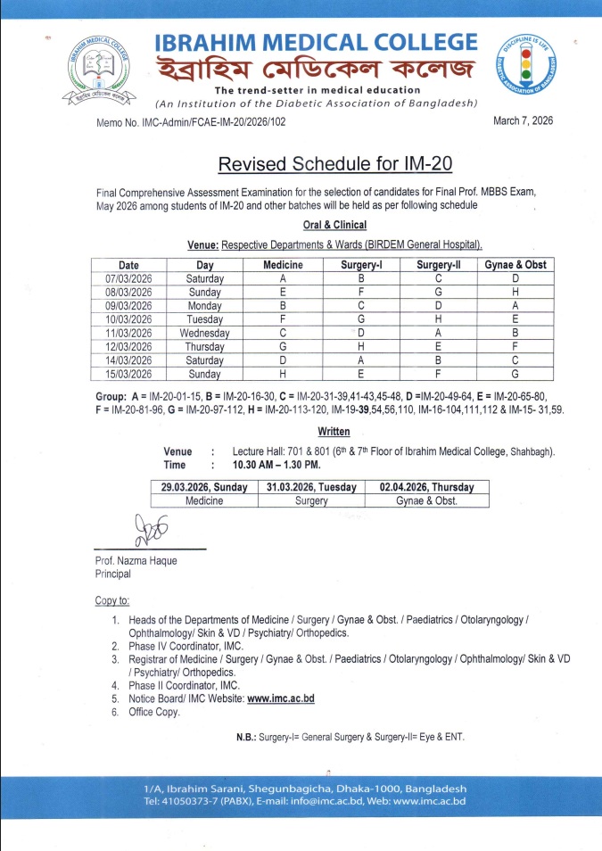 Revised Schedule for IM-20-Final comprehensive assessment exam